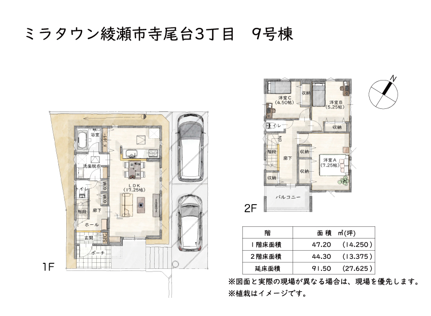 建物面積 | 壁芯91.5m²(27.62坪) | ||