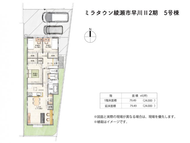 建物面積 | 内法79.49m²(24.00坪) | 間取り | 3LDK |
