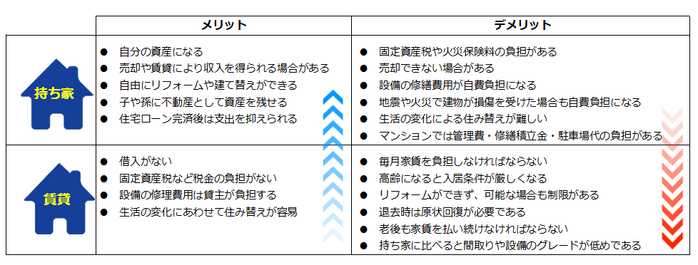 持ち家と賃貸は、それぞれメリットもあればデメリットもあります。
