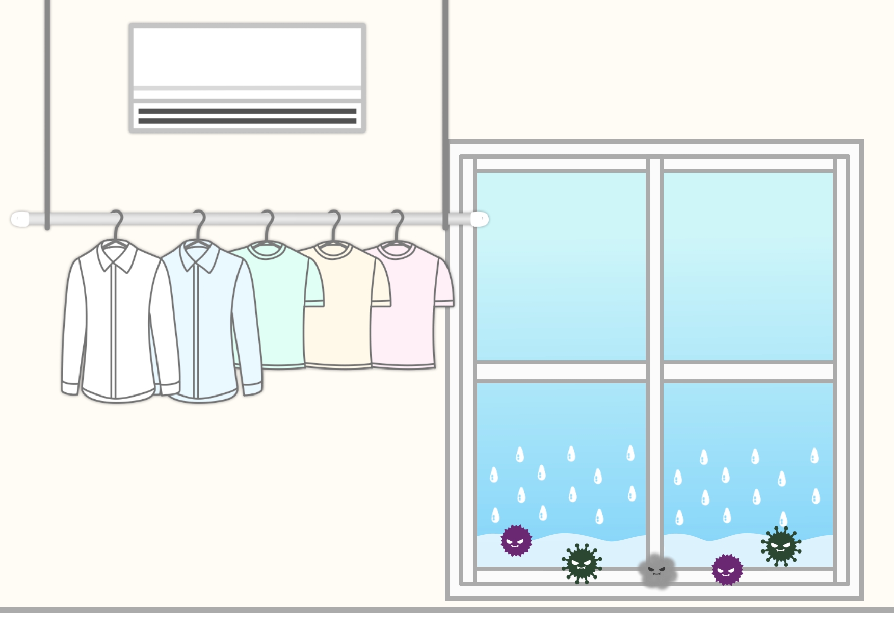 ● 結露の拭き取り・・発生した結露は後回しにせず、こまめに拭き取る