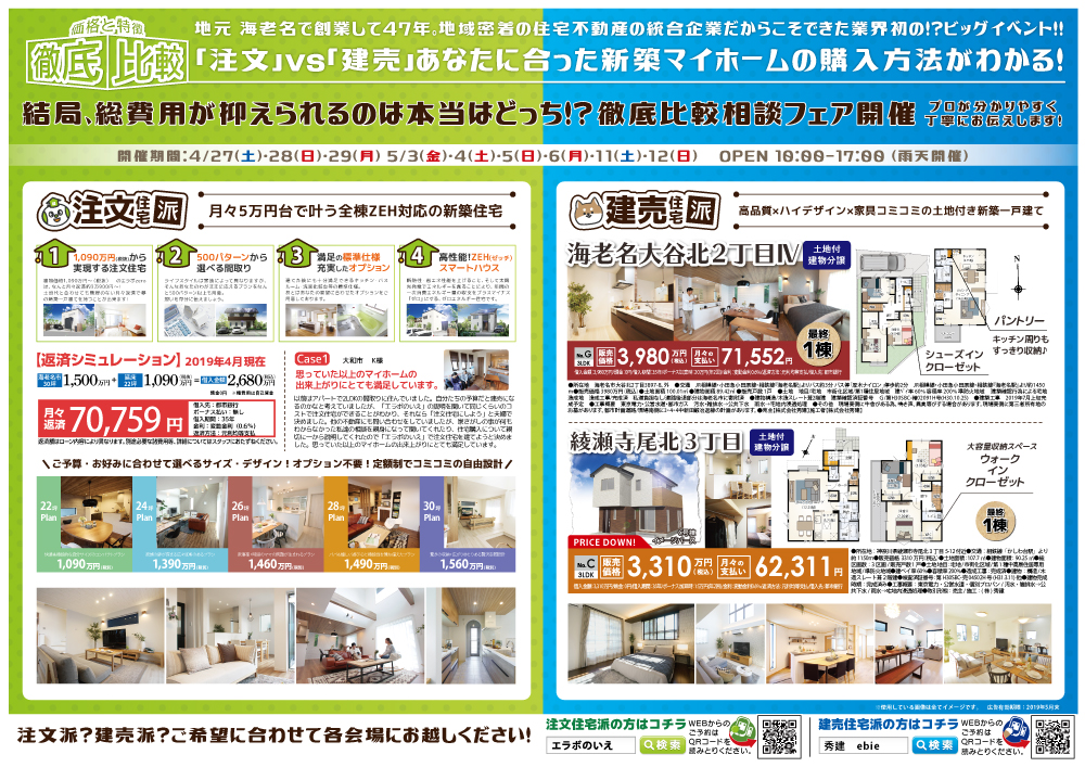 徹底比較!! 注文住宅VS建売住宅イベント[イベントコード:19K044]