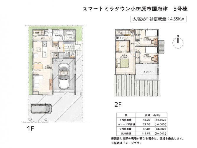 | 敷地面積 | 実測137.29m²(41.53坪) | 建物面積 | 壁芯112.82m²(34.06坪) |